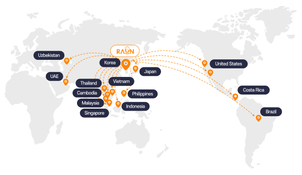 Global Market SupportRaon’s success in global markets is a key asset in fostering startups that can succeed not only in Korea but also in international markets.Global NetworkBy leveraging Raon’s established global partnership network, we provide opportunities for collaboration with global companies and overseas market testing. Through our network with major global IT hubs such as the United States, Japan, and Singapore, we strengthen startups' global competitiveness.